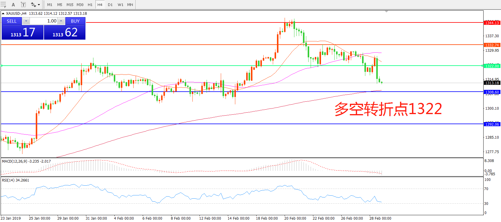 交易策略:在1322.00之下看跌,目标1308.00   1292.00