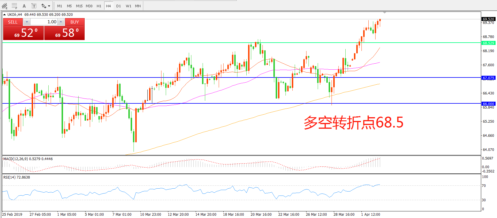 交易策略: 在68.50之上看涨,目标72.00   75.00