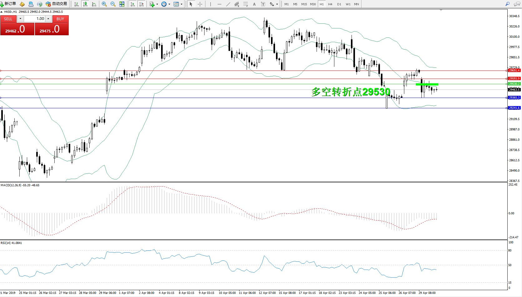 劳动节假期结束,节前中国制造业PMI不及预期,中国内地股市全天基本在平盘线上方震荡。香港恒生指数早盘低开低走,随后维持低位盘整,截至收盘,恒指跌0.65%,报29699.11点。美国4月ADP就业人数达27.5万人,大幅好于预期,服务业就业人数增幅为逾两年来最大。今天凌晨美联储决议声明:将在货币政策上保持耐心,维持联邦基金利率目标区间不变、维持贴现利率在3%不变。美国经济活动按稳固的速度增长,劳动力市场表现强劲。就业人口一直在稳健地增长,失业率保持在低位。