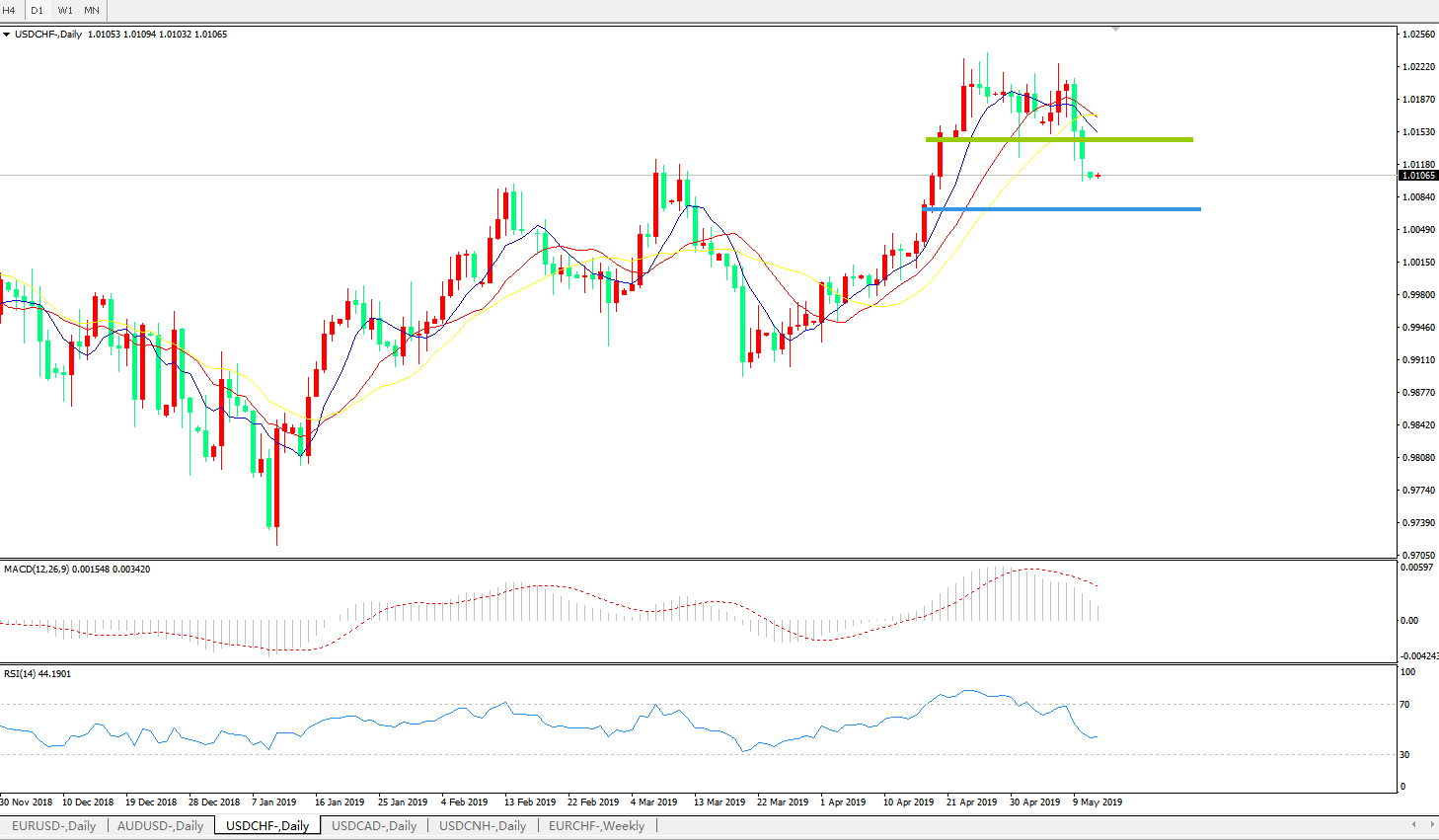 美元瑞郎USDCHF   日线图: