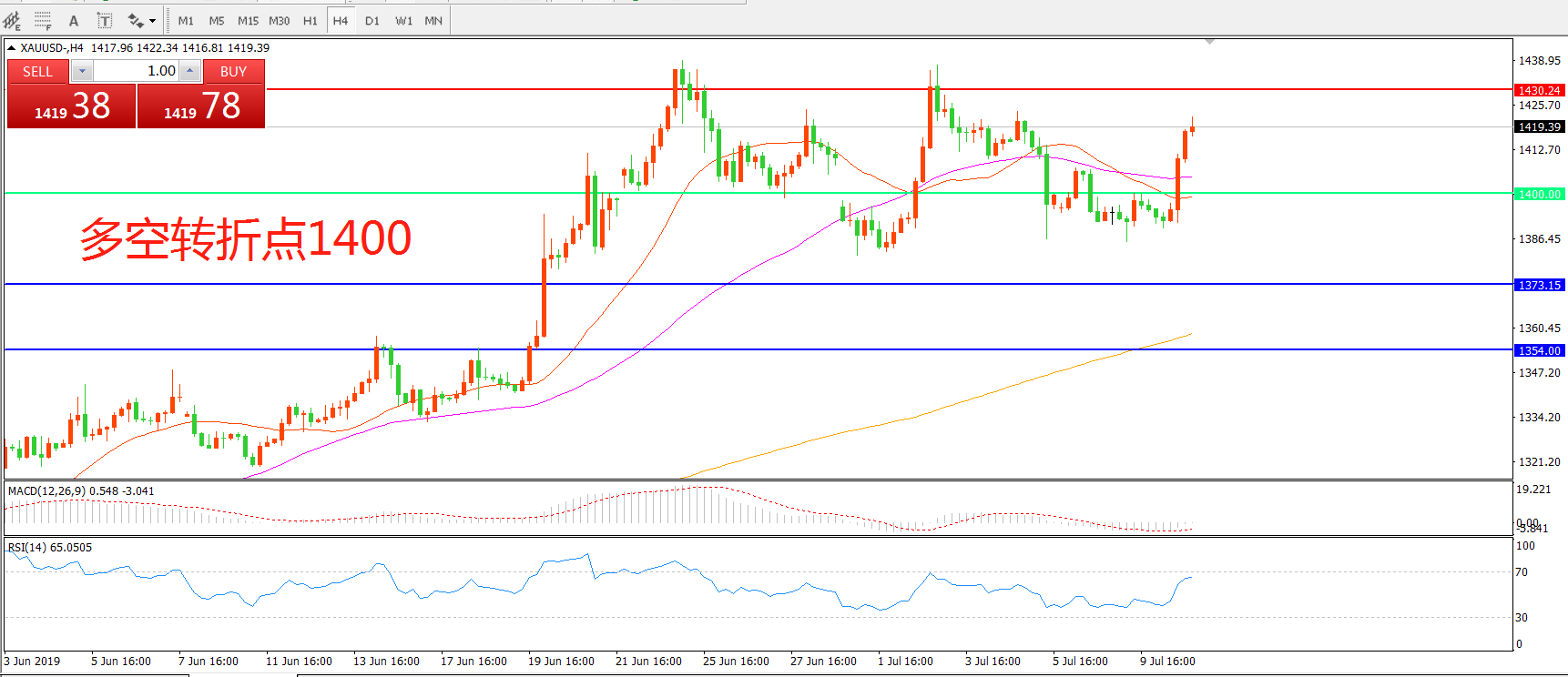 交易策略:在1400.00之上看涨,目标1430.00    1490.00