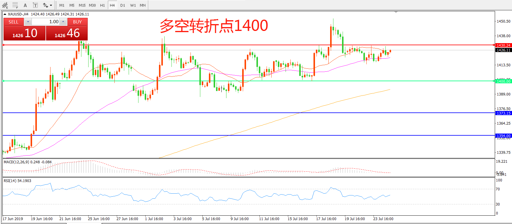 交易策略:在1400.00之上看涨,目标1430.00   1450.00