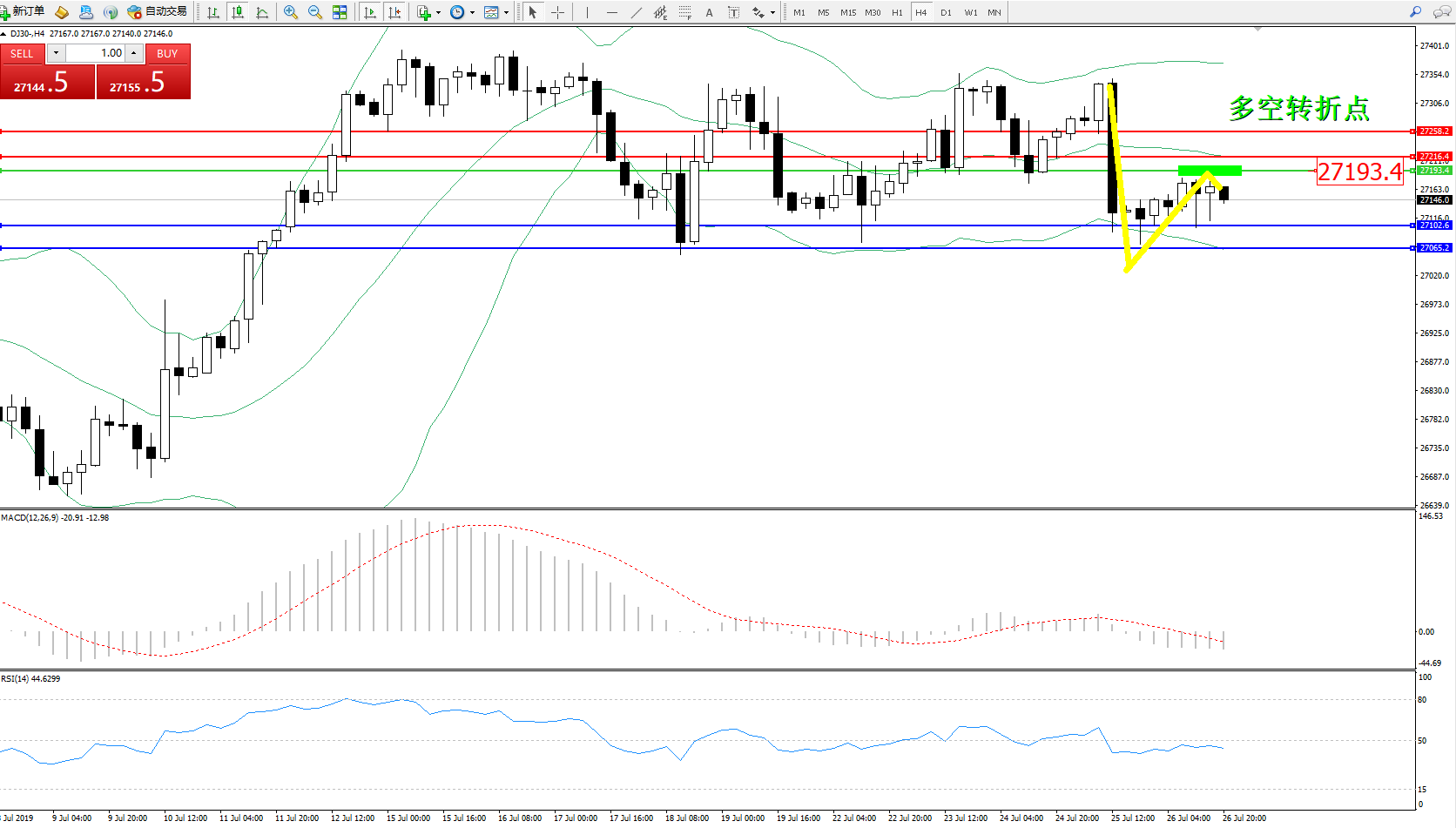 道琼斯指数7月26日(周五)收盘上涨51.50点,涨幅0.19%,报27192.45点。由于耐用品订单和二季度GDP等数据好于预期,美元指数一度顶破98关口阻力,创半周新高;国内生产总值报告好于预期,企业盈利继续好于预期,刺激了股市上涨;但你也可以看到利率继续保持低位,人们在期待美联储降息;在目前这个业绩公布期,上市公司盈利报告总体上提振了股市,不过投资者仍在密切关注任何显示企业盈利放缓的迹象。
