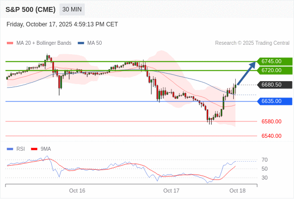 在 6635.00 之上,看涨,目标价位为 6720.00 ,然后为 6745.00 。