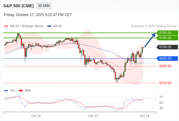 在 6665.00 之上,看涨,目标价位为 6745.00 ,然后为 6765.00 。