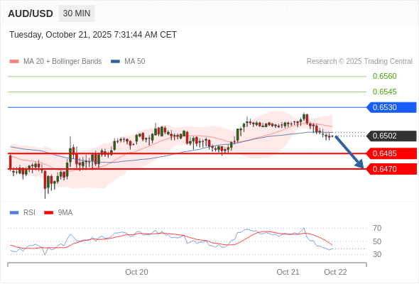 在 0.6530 之下,看跌,目标价位为 0.6485 ,然后为 0.6470 。