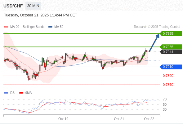 在 0.7910 之上,看涨,目标价位为 0.7955 ,然后为 0.7985 。