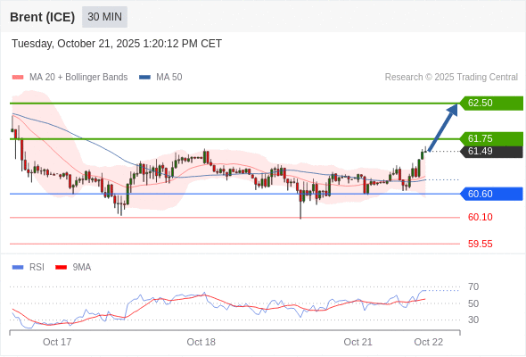在 60.60 之上,看涨,目标价位为 61.75 ,然后为 62.50 。