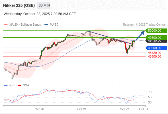 交易策略: 在 49000.00 之上,看涨,目标价位为 49600.00 ,然后为 50000.00 。