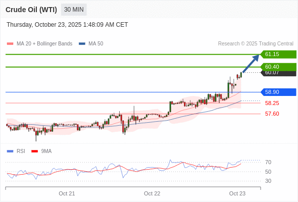 在 58.90 之上,看涨,目标价位为 60.40 ,然后为 61.15 。