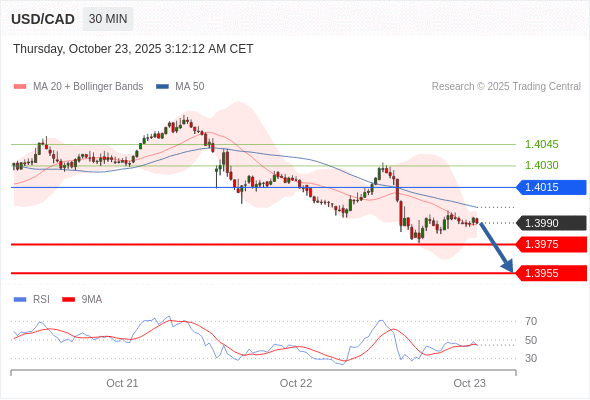 在 1.4015 之下,看跌,目标价位为 1.3975 ,然后为 1.3955 。