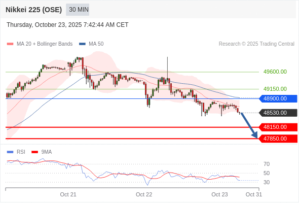 在 48900.00 之下,看跌,目标价位为 48150.00 ,然后为 47850.00 。