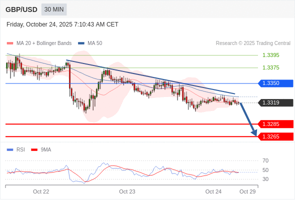 在 1.3350 之下,看跌,目标价位为 1.3285 ,然后为 1.3265 。