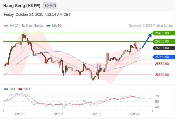 香港恒生指数期货 当日内: 在25980.00之上,看涨。