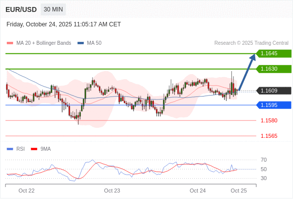 在 1.1595 之上,看涨,目标价位为 1.1630 ,然后为 1.1645 。