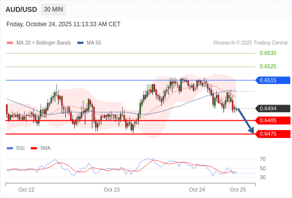 在 0.6515 之下,看跌,目标价位为 0.6485 ,然后为 0.6475 。