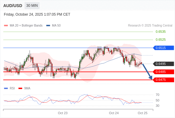 交易策略: 在 0.6515 之下,看跌,目标价位为 0.6485 ,然后为 0.6475 。