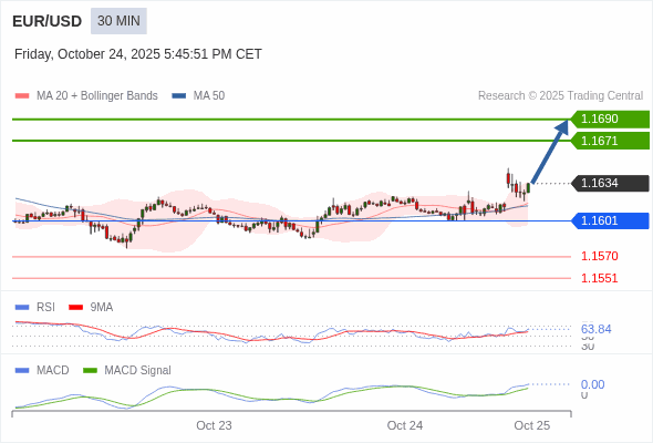 欧元/美元 当日内 : 看涨,当 1.1601 为支撑位。