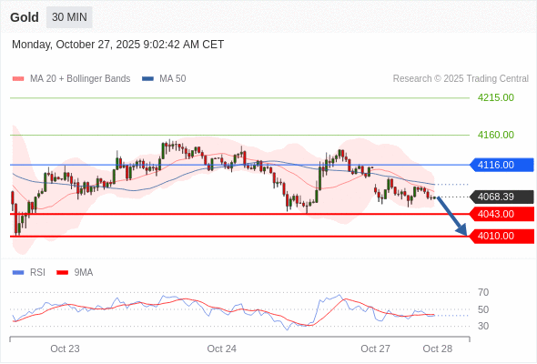 在 4116.00 之下,看跌,目标价位为 4043.00 ,然后为 4010.00 。