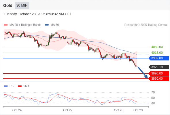 在 3982.00 之下,看跌,目标价位为 3890.00 ,然后为 3860.00 。