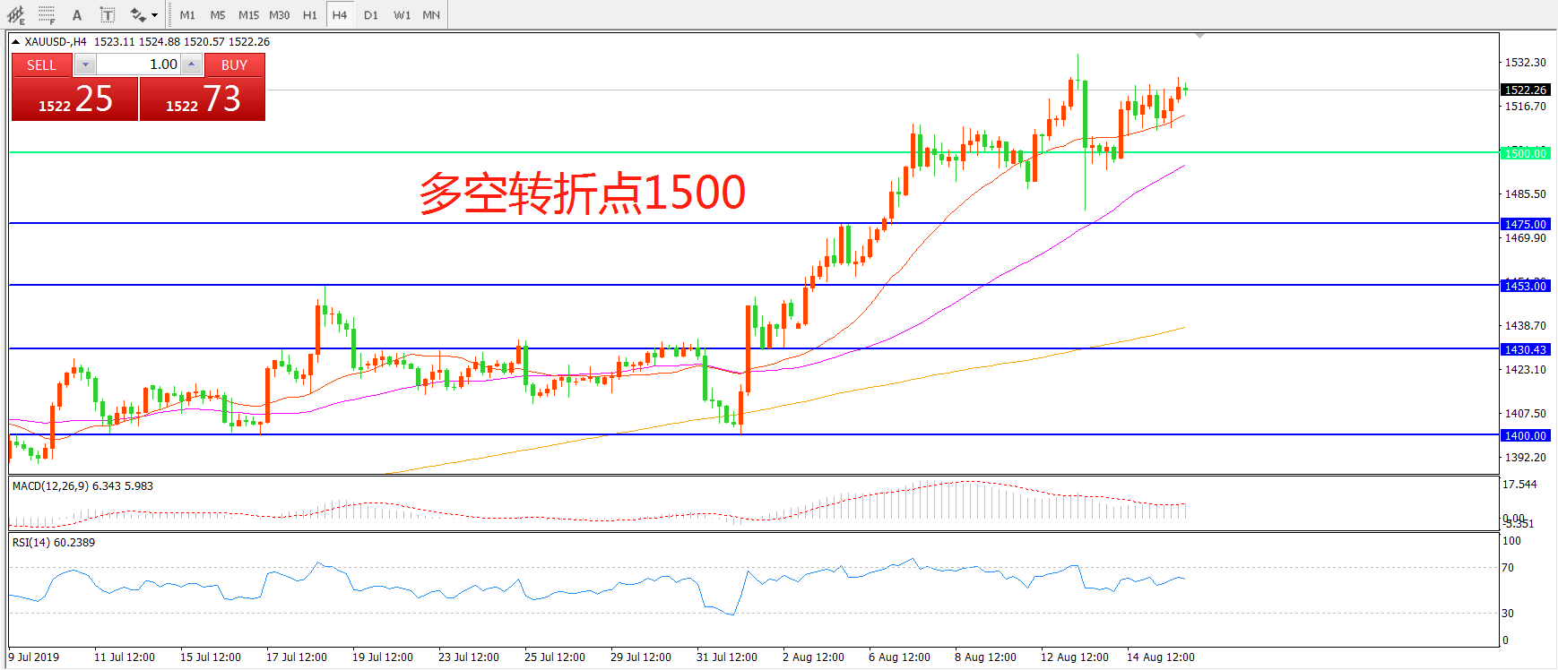 交易策略:在1500.00之上看涨,目标1530.00 1565.00
