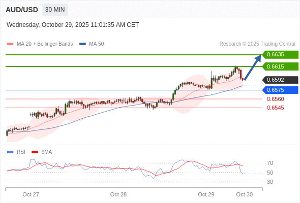 在 0.6575 之上,看涨,目标价位为 0.6615 ,然后为 0.6635 。