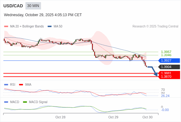 美元/加元 当日内 : RSI是超卖的