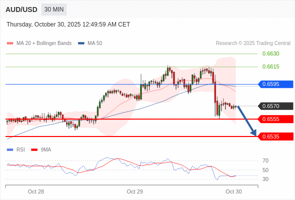 在 0.6595 之下,看跌,目标价位为 0.6555 ,然后为 0.6535 。