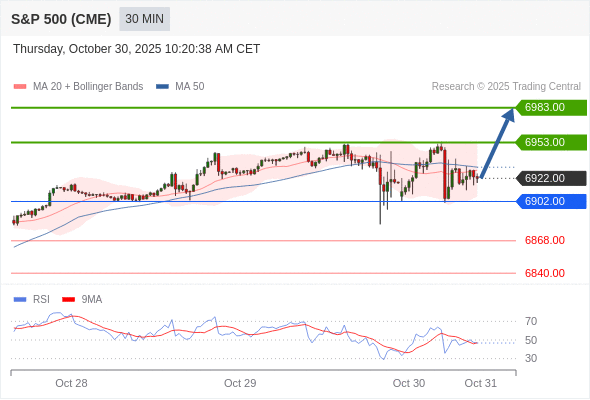在 6902.00 之上,看涨,目标价位为 6953.00 ,然后为 6983.00 。