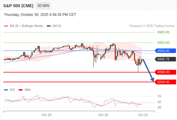 在 6930.00 之下,看跌,目标价位为 6868.00 ,然后为 6840.00 。