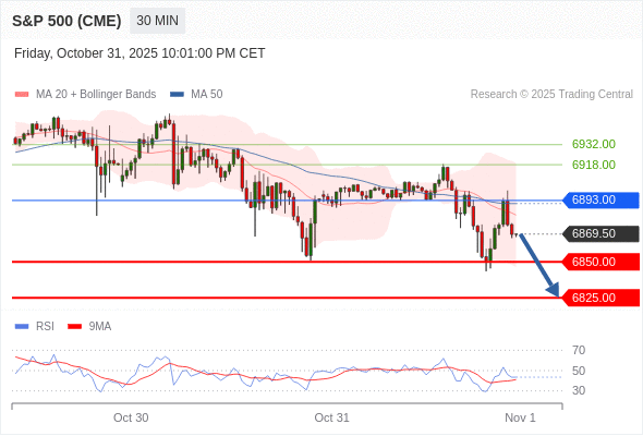 交易策略: 在 6893.00 之下,看跌,目标价位为 6850.00 ,然后为 6825.00 。