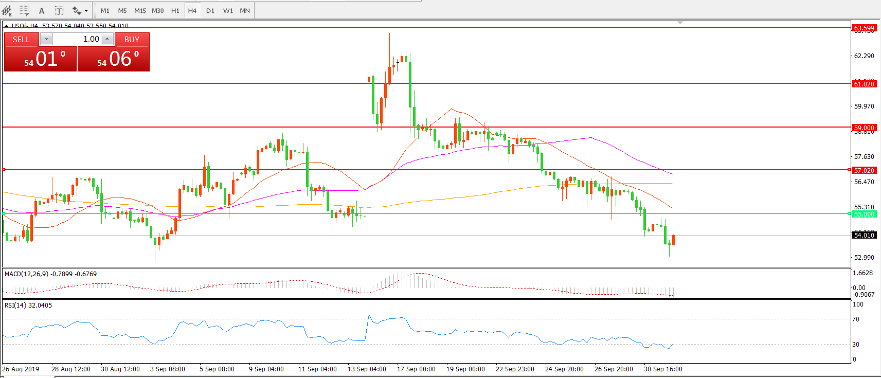 交易策略: 在55.00之下看跌,目标52.50    50.50