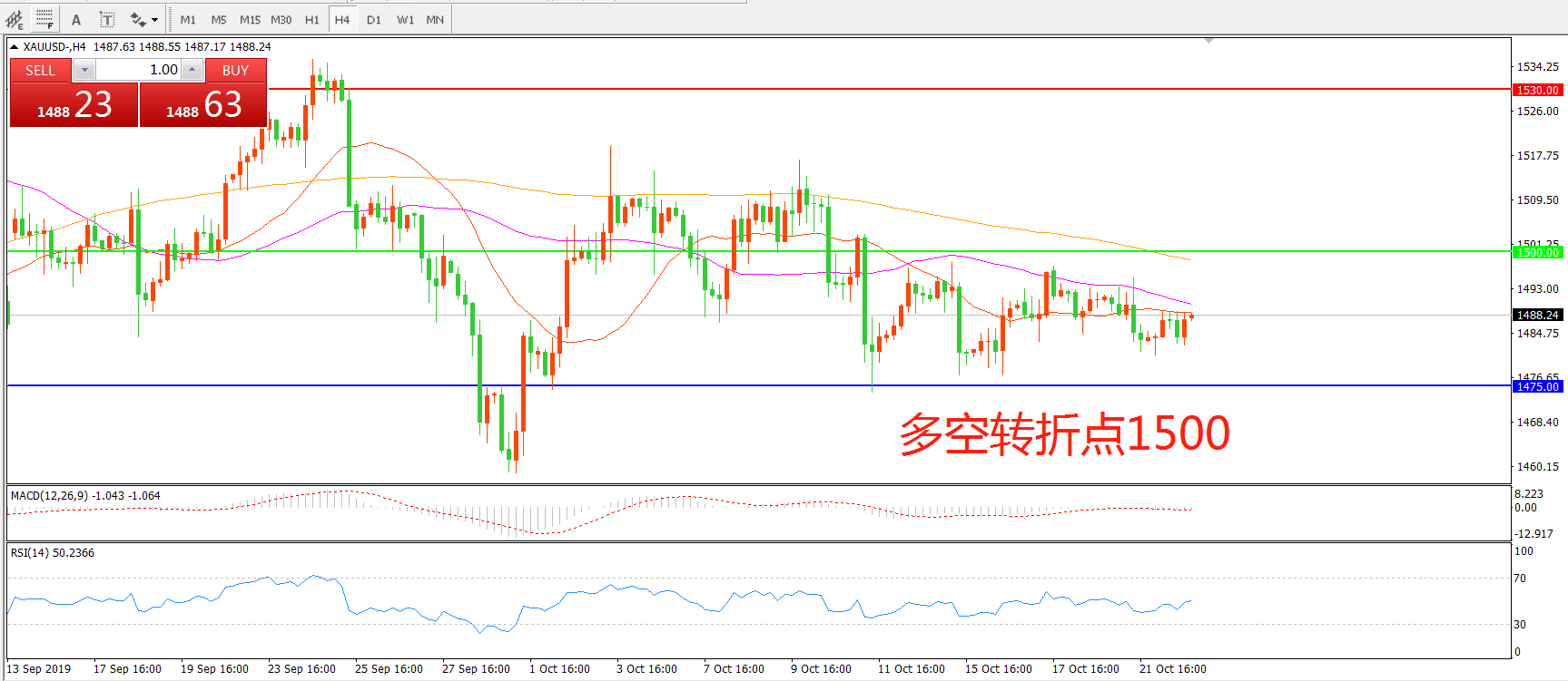 交易策略:在1500.00之下看跌,目标1475.00   1450.00
