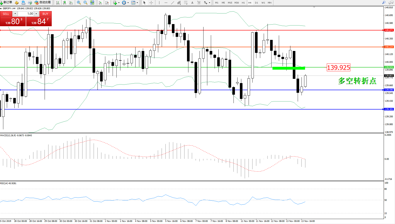 交易策略:139.925下方看跌,目标139.590139.305