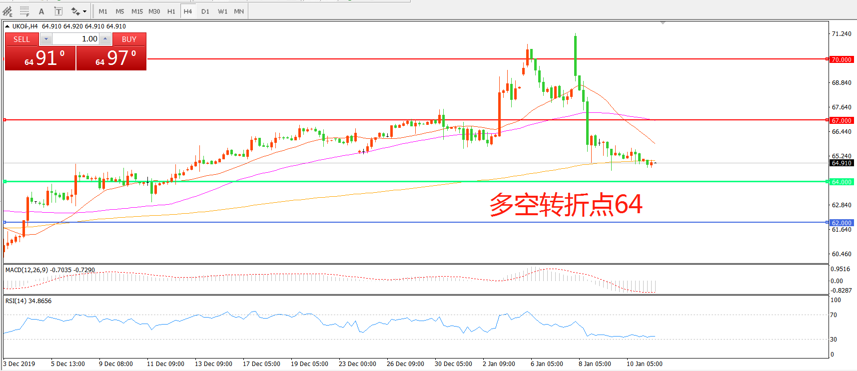 交易策略:在64.00之下看跌,目标62.00    59.00