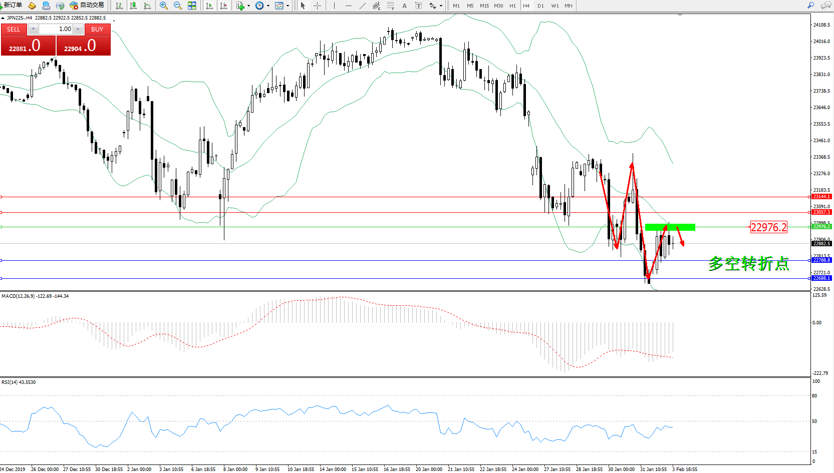 日经225指数2月3日(周一)收盘下跌252.68点,跌幅1.09%,报22952.50点。突发公共卫生事件在较大程度上影响了市场情绪,全球市场股市仍然呈现出了较为明显的回落,美国长短期国债收益率差也急剧缩小,再度显示出市场对于未来经济增长的担忧。投资者下调全球经济增速预期。只有当市场认为疫情不会持续存在,且全球需求显现改善迹象后 ,股市才能稳定下来。