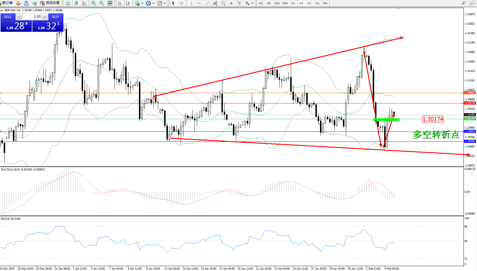 交易策略:1.30174上方看涨,目标1.30578、1.30843