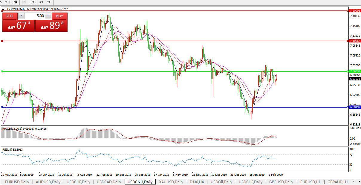 交易策略: 在7.0000之下,看跌,目标价位为6.8820,然后为6.7600。