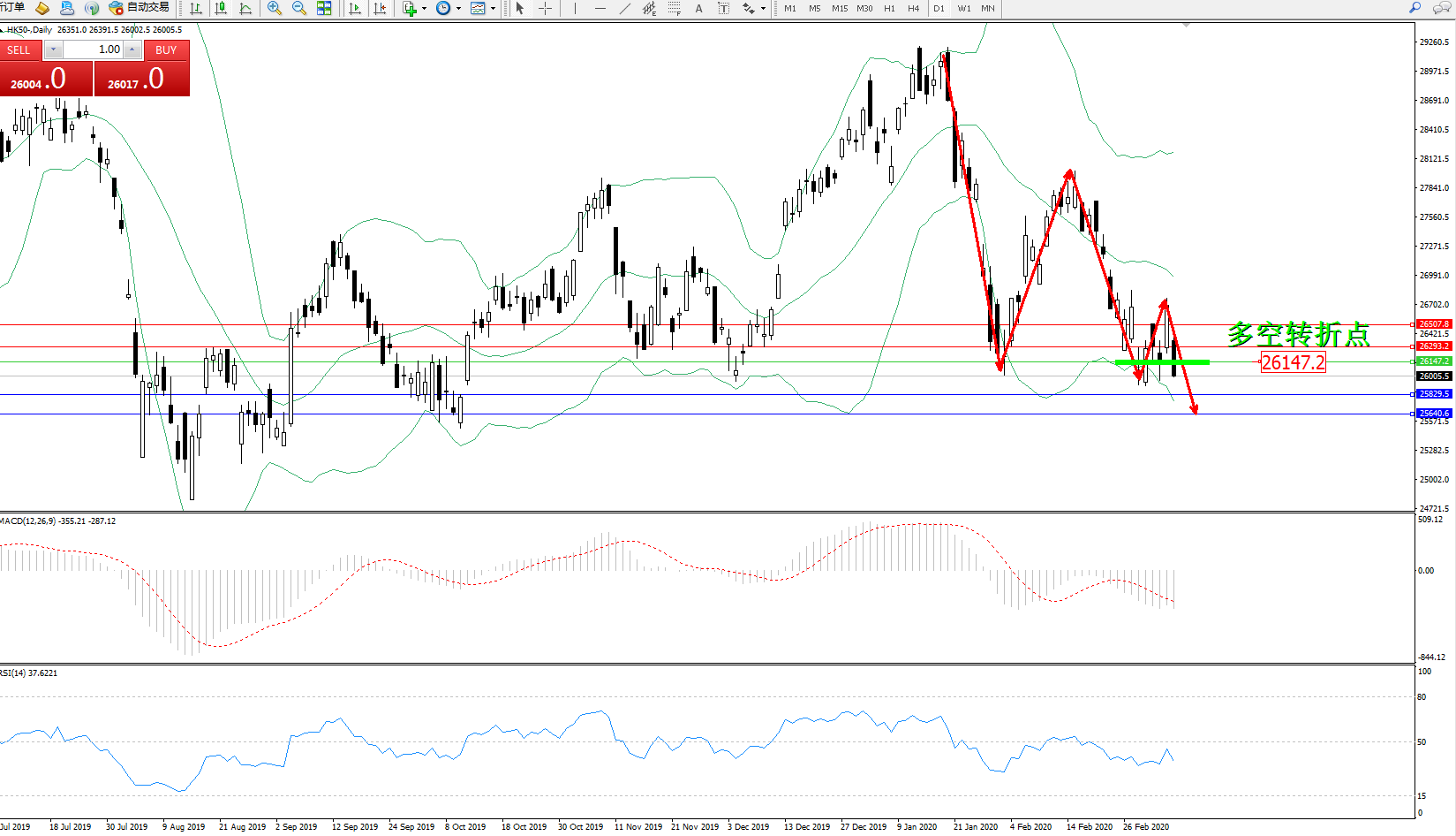 技术点评:空头动力持续弱势下探,处于布林带指标中下轨区间震荡下移,且布林带指标呈张口走势中,跌势还在持续,未有止步迹象,MACD指标处于空头区域持续整理平移,RSI指标处于50均衡线下方持续震荡有下行态势;