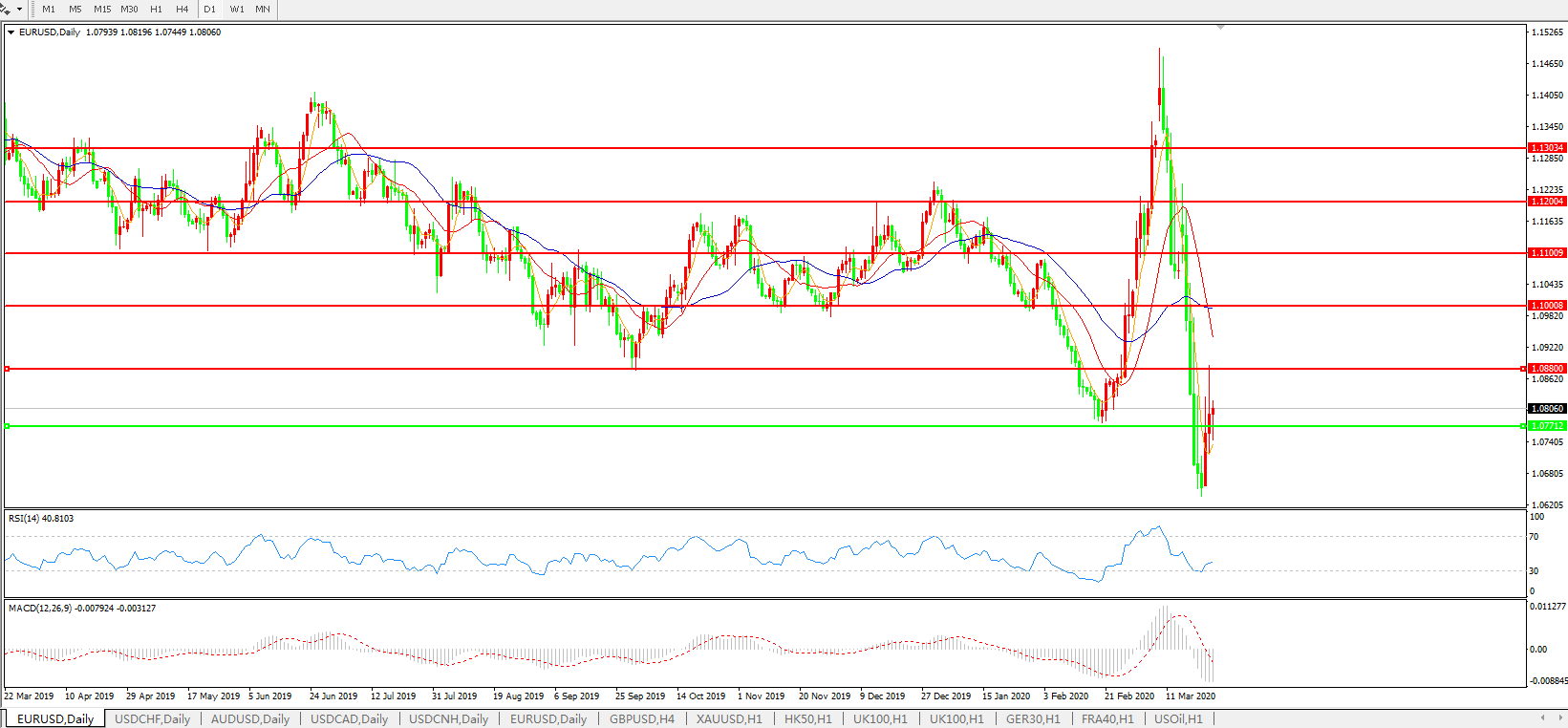 欧元兑美元EURUSD   日线图: