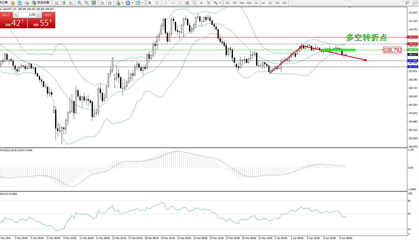 美元兑日元跌0.08%108.46;周五(410)2020年耶稣受难日,西方国家多数市场休市,外汇市场整体波动有限,油市方面传来一定利多消息,美元指数保持弱势,下周将有大量经济数据公布,全球投资者会透过假日经济受到冲击的状况,进一步研判欧美经济所受的冲击程度,这意味着在下周市场恢复交易后,避险情绪仍有大概率会卷土重来,各方断然不可对此掉以轻心。