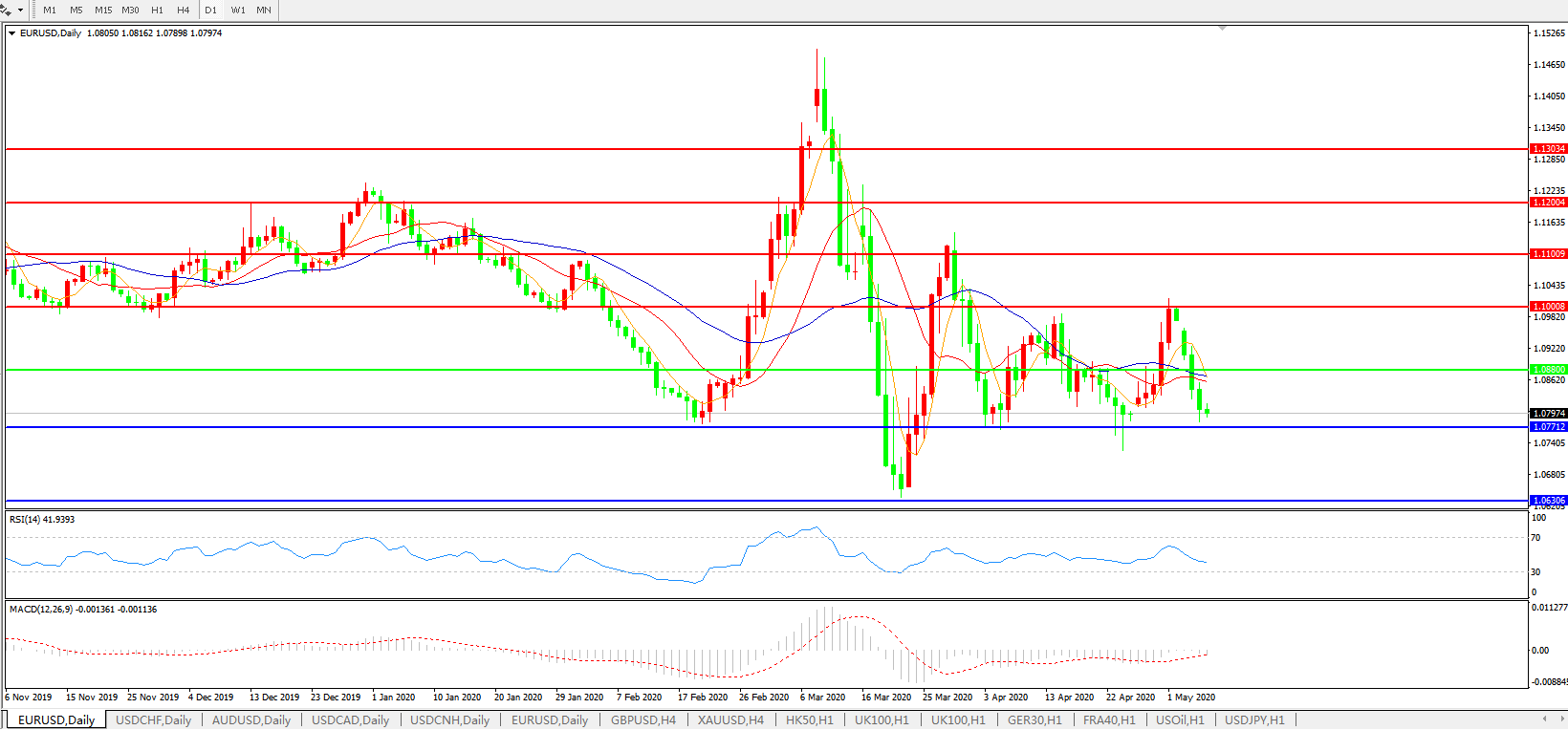 欧元兑美元下跌0.42%至1.0795,盘中触及近两周低点,汇价已经连跌三天,之前欧盟表示欧元区经济将萎缩7.7%;上述预测加剧了不确定性;之前德国法院周二的裁决令人对欧洲央行债券购买计划的前景产生怀疑。欧洲央行管理委员会成员表示批评中央银行的职权或独立性是危险做法;央行可能不得不采取进一步行动提升通货膨胀。美国银行讨论了欧元兑美元的前景,并概述了在未来几个月中朝着1.02的下滑,并说明了保持结构性看跌的几个关键原因。尽管欧元兑美元被低估了约10%,但是根据我们的估计,我们认为该货币对在今年余下的时间会进一步走弱。预计欧元兑美元将处于1.02至1.05之间,存在下行风险。欧元在未来数月会走弱,因为全球经济前景恶化,欧元区经济衰退更严重。另外,宏观的对应政策,外围风险,主权风险,低油价以及长期欧元的市场地位都会使欧元处于疲软状态。