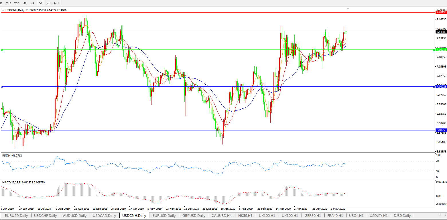 交易策略: 在7.1000之上,看涨,目标价位为7.2000,然后为7.3000。