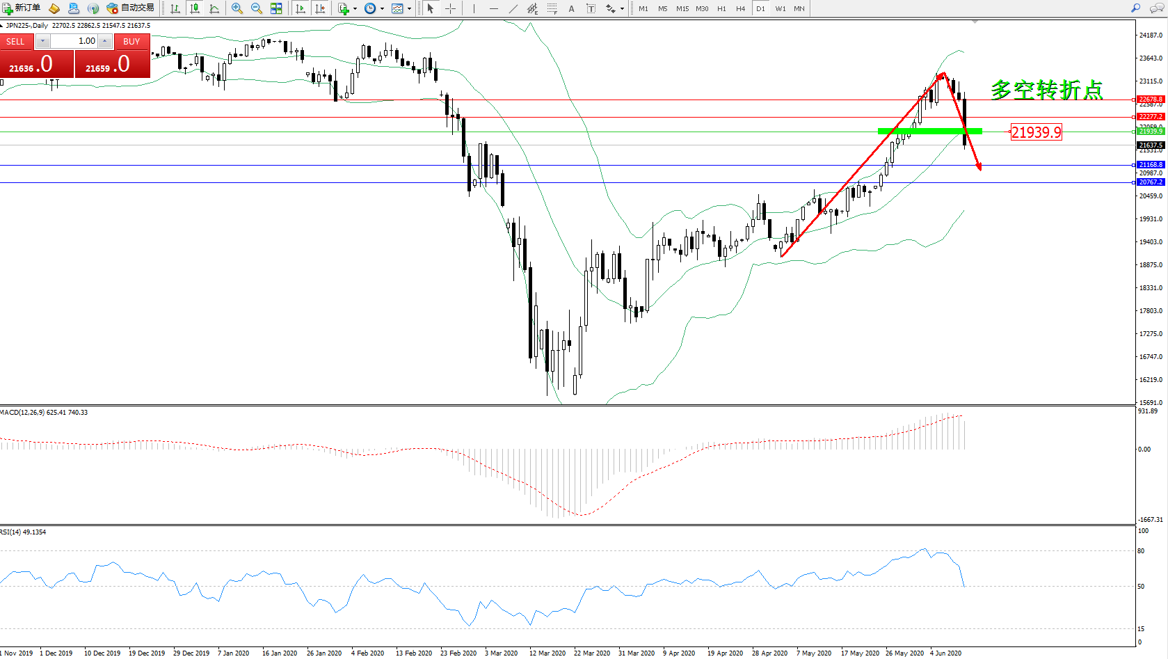 日经225指数6月11日(周四)收盘下跌644.95点,跌幅2.79%,报22480.00点。新冠疫情和经济前景忧虑推动亚洲股市和商品货币走低,与此同时亚洲股市纷纷走低。美联储在决策声明中表示,中期内经济面临“相当大的风险”。此外,经合组织关于全球经济今年将会萎缩6%的预期也对市场风险人气形成了打压;而且美国新冠肺炎确诊患者累计超过200万人,也打压市场人气;相比日本经济恢复而言,美国恢复显得更快。日本央行下周将举行政策会议,市场预计,日本央行将会承诺继续收购日本国债和企业债券,但是留给其进一步扩大政策力度的空间已经非常有限.