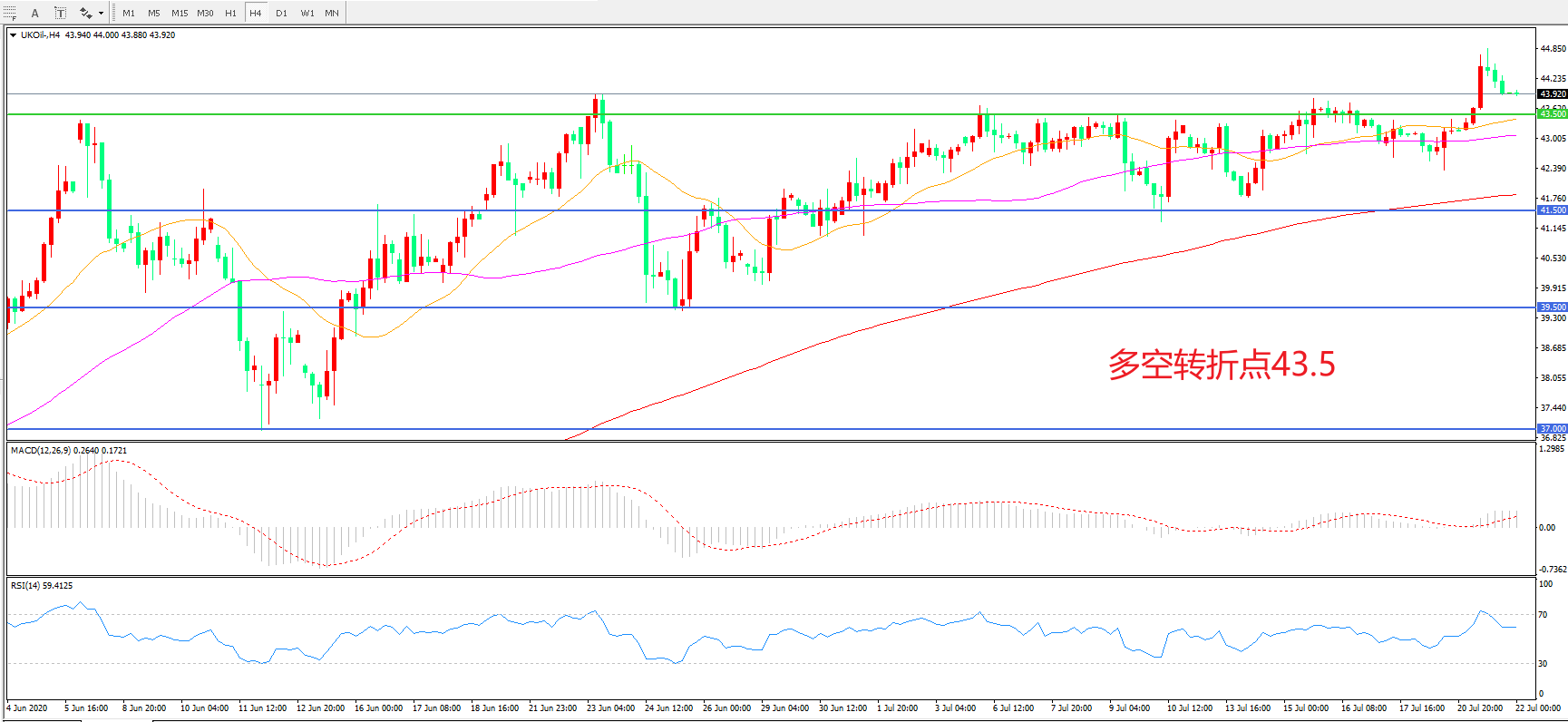 多空转折点:43.50