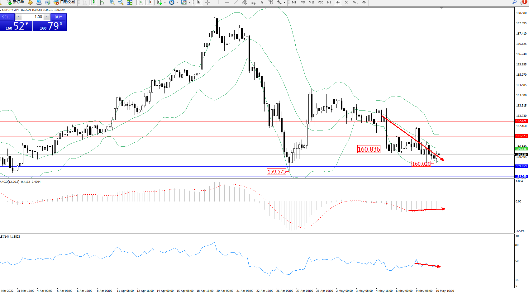 交易策略:160.836下方看跌,目标159.859、159.269
