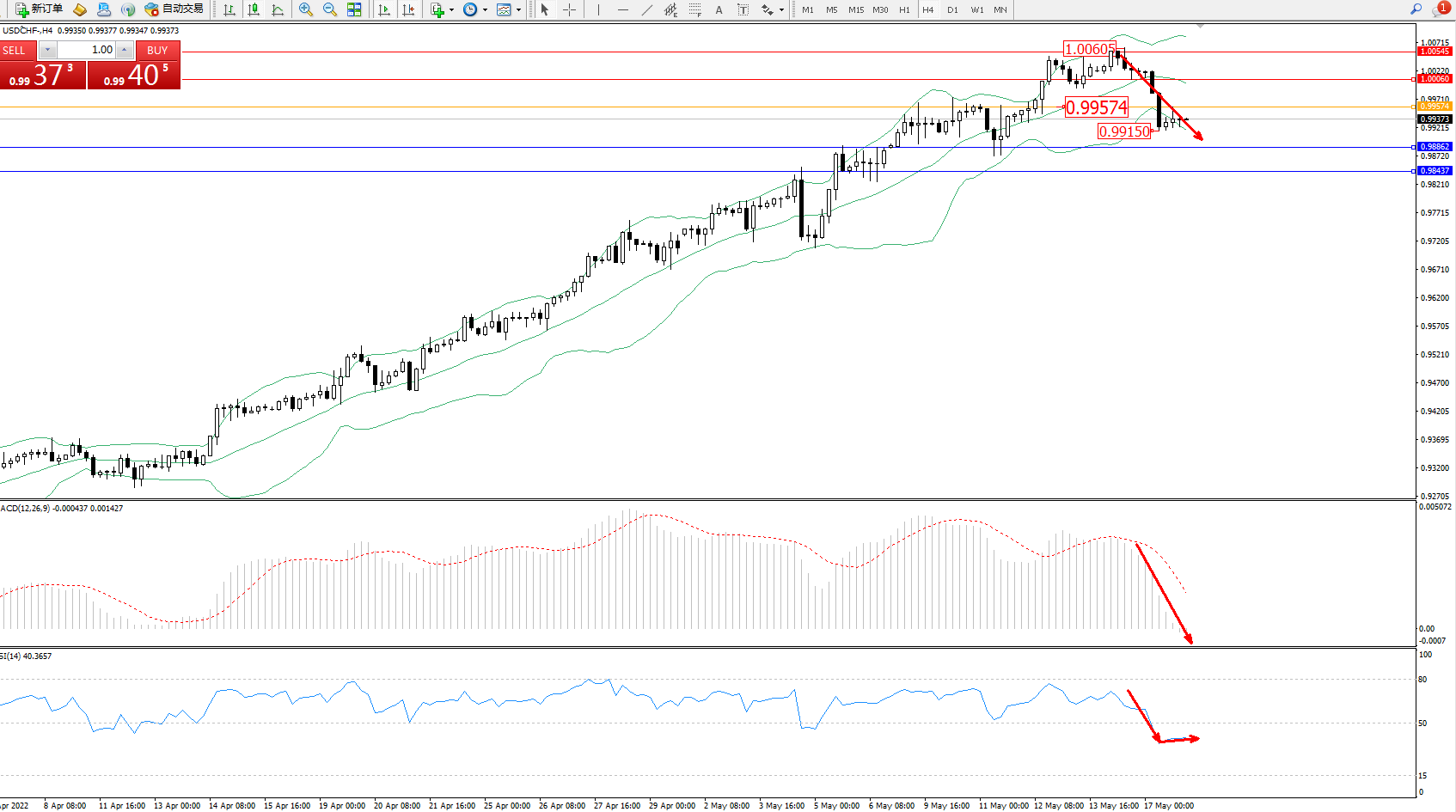 交易策略:0.99574下方看跌,目标0.98862、0.98437
