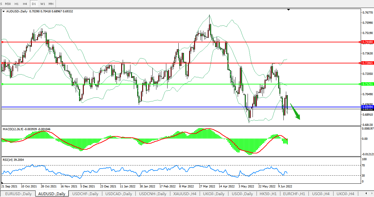 交易策略:0.7125下方看跌,目标0.6950、0.6800