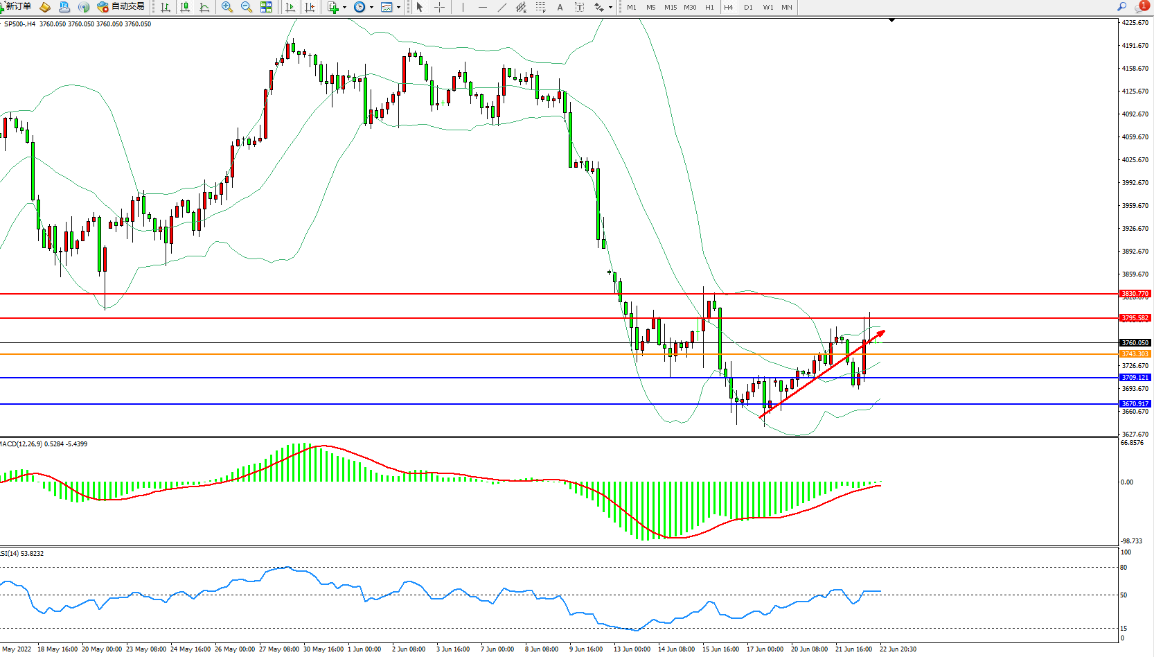 标普500指数6月22日(周三)收盘下跌5.09点,跌幅0.14%,报3759.75点;标普500指数到6月底仅剩七个交易日,由于担心高通胀以及美联储立场鹰派恐令美国经济陷入衰退,该指数自年初以来已经下跌了21%。