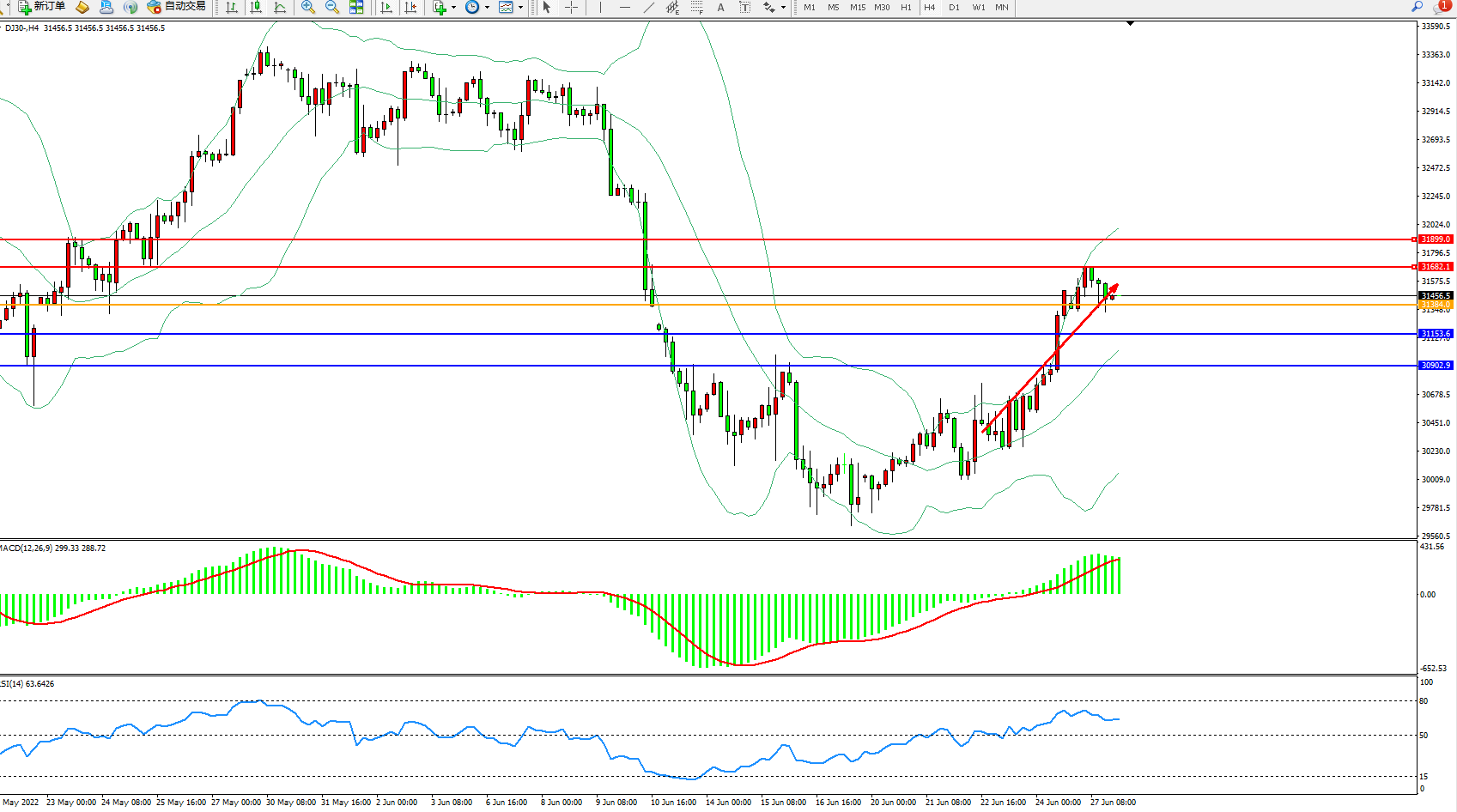 道琼斯指数6月27日(周一)收盘下跌61.16点,跌幅0.19%,报31439.52点;美国股市周一收跌,几乎没有什么催化剂推动投资者情绪改变,今年接近过半,期间股市一直受累于通胀忧虑加剧和美联储收紧政策。